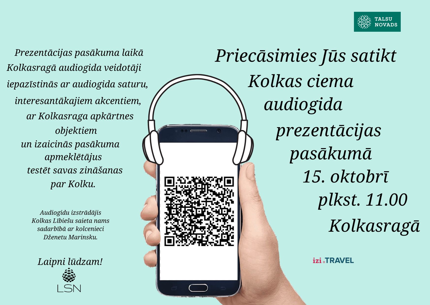 Audio­gi­da mar­šruts ir vis­ap­tve­rošs ceļo­jums Kol­kas cie­ma vēs­tu­rē un iepa­zīs­ti­na ar vie­tām, nori­sēm un cil­vē­kiem cie­mā no tā pirms­ā­ku­miem līdz mūsu die­nām. Tas pie­ejams izi​.TRA​VEL apli­kā­ci­jā un por­tā­lā www​.izi​.tra​vel. Dabā pie lie­lā­kās daļas mar­šru­ta objek­tu esam cen­tu­šies izvie­tot QR kodus, lai nodro­ši­nā­tu ātrā­ku un ērtā­ku pie­kļu­vi audio­gi­dam lietotnē.