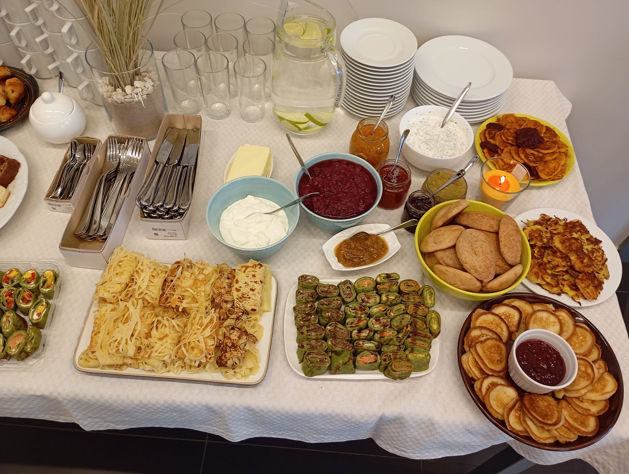 Galdā tika celtas dažādas pankūkas. Un kā piedevas pie pankūkām varēja nodegustēt tādus kulinārijas brīnumus kā zīdkoka ogu, tomātu – lavandas, gurķu – vaniļas, rabarberu – apelsīnu un ogu fizāļa ievārījumus no Ingrida Ernstreite krājumiem. Ar zināšanām un pieredzi par to, kā viņas mājās jau vairākās paaudzēs tiek gatavotas pļedas (tradicionāls lībiešu ēdiens, kas līdzinās pankūkām), klātesošos iepazīstināja Kadrija Kehere. Ar dziesmām priecēja Kolkas lībiešu ansamblis «Laula». Neizpalika arī danči.